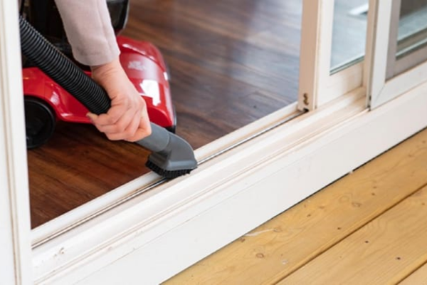 Sử dụng mềm, máy hút bụi mini hoặc cọ nhỏ để lấy bụi ra khỏi ray và khe cửa .