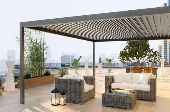 MB OpenSky 120 – dòng thư giãn che cao cấp đến từ thương hiệu Aluprof châu Âu – là giải pháp lý tưởng cho các không gian như biệt thự, penthouse, quán café hay nhà hàng ngoài trời. Sản phẩm hiện đang được phân phối độc quyền tại Việt Nam bởi BRC .