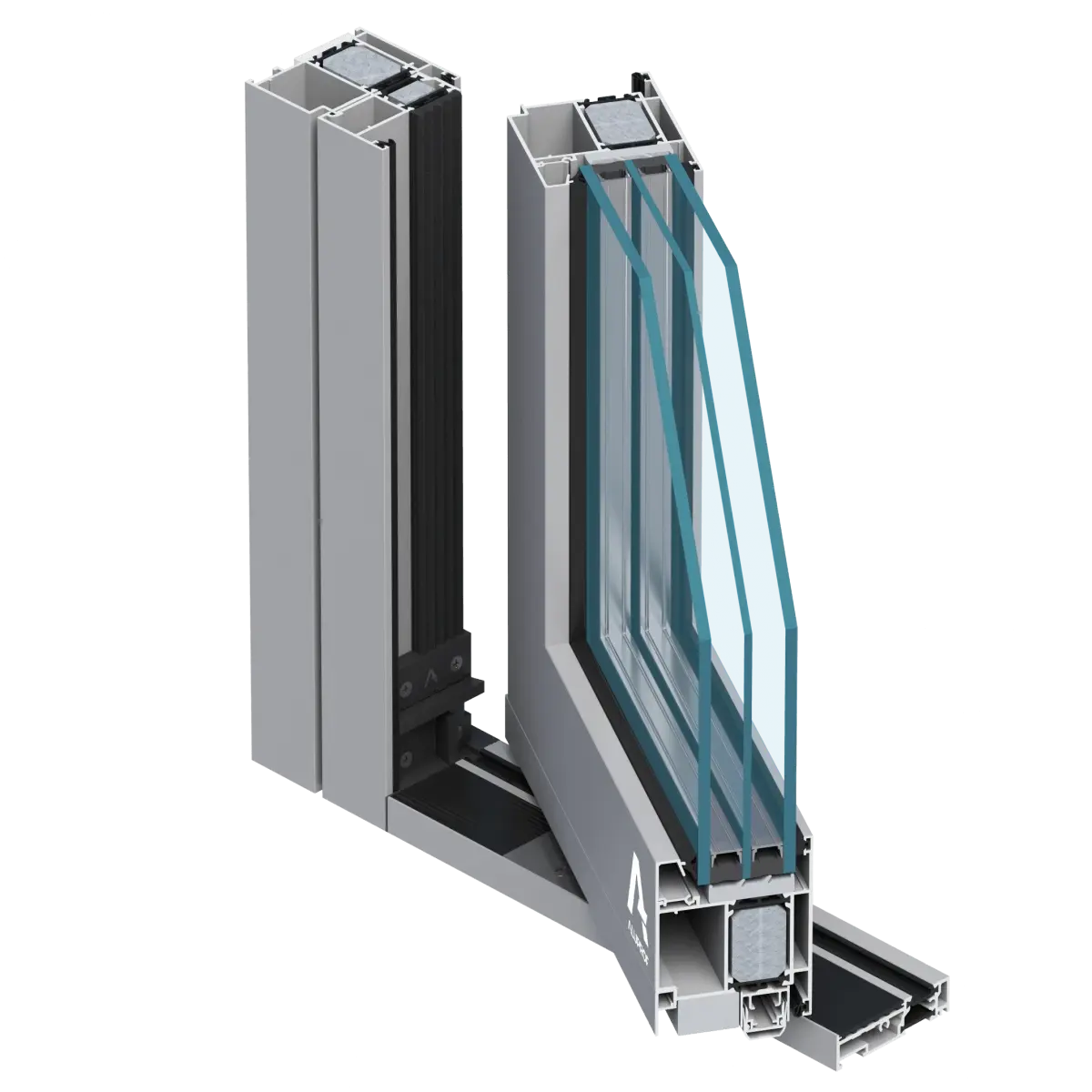 Cửa Pivot MB-86N là một cấu trúc ngoại lệ với biểu tượng thiết kế và kích thước lớn. Trục xoay tâm trí lại có vẻ độc hại, trong khi bản lề ẩn giúp cửa chịu tải cao. Loại cửa này rất được ưa chuộng trong các cấu trúc kiến trúc dự án có yêu cầu về kích thước lớn và bản thiết kế. Cửa Pivot là lựa chọn lý tưởng khi cần tạo điểm nhấn mạnh mẽ và đóng vai trò trò chơi như một yếu tố nổi bật trên mặt tiền xây dựng.Cửa Pivot MB-86N của ALUPROF là một lựa chọn đặc biệt dành cho các loại cửa sổ trượt, cửa xếp gấp hoặc cửa sổ có khung truyền thống. Hệ thống này cho phép tạo ra các dạng tấm hoặc cửa kính có hiệu suất cách nhiệt và cách âm vượt trội, cùng khả năng kín khí và chống nước hàng đầu, đáp ứng các yêu cầu về tiết kiệm năng lượng và bảo vệ môi trường. Một số điểm nổi bật:- Kích thước lớn, chiều rộng tới 2 m và cao 3,4 m
